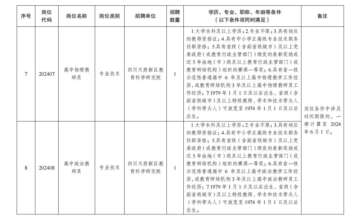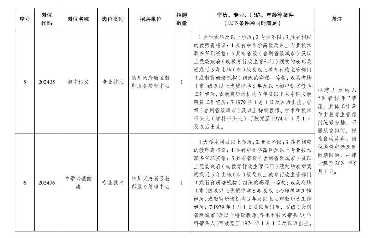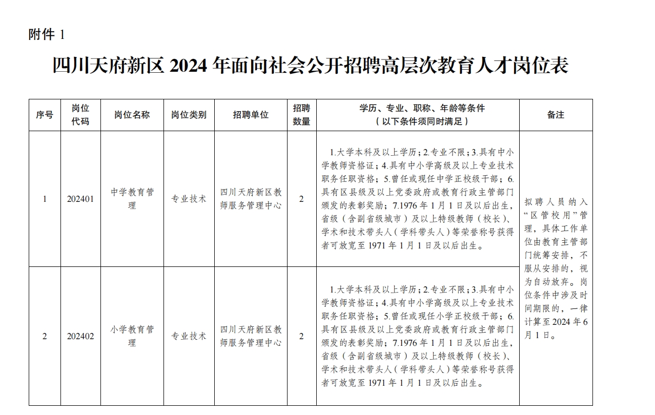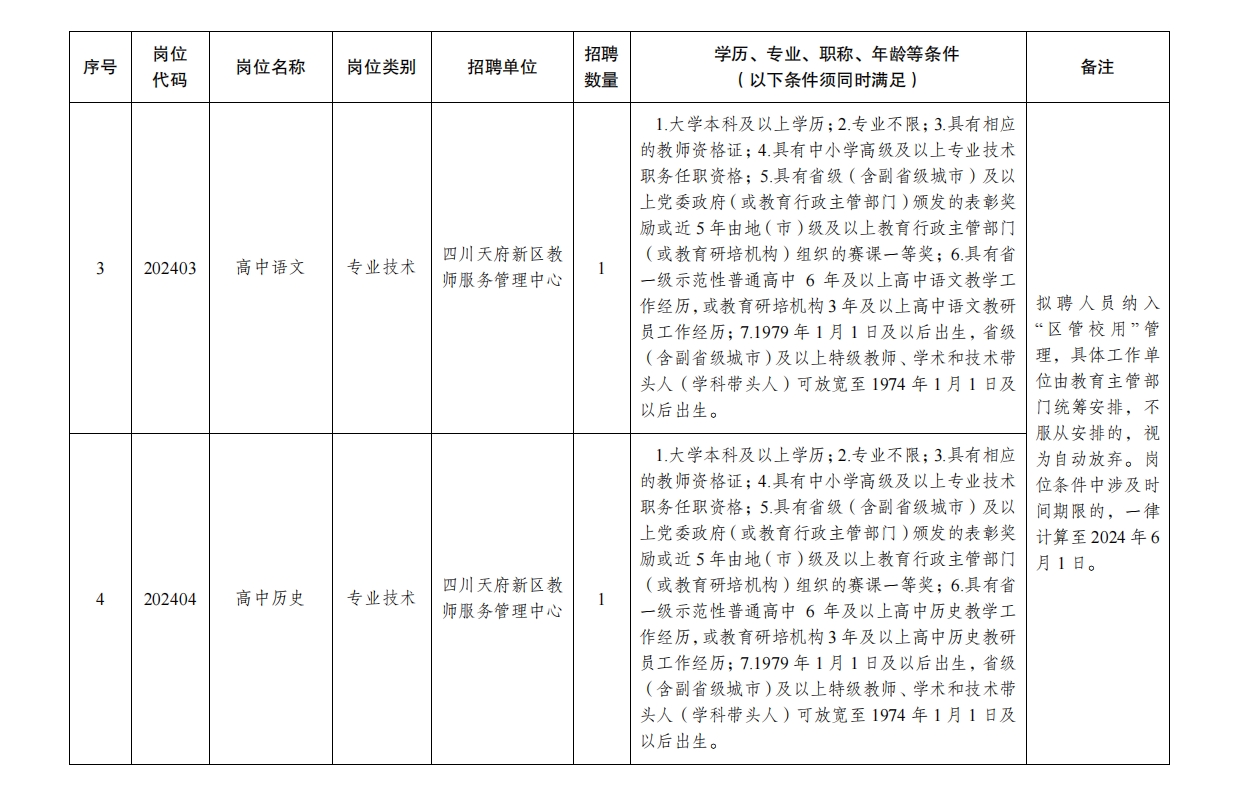 3.符合《四川天府新区2024年面向社会公开招聘高层次教育人才岗位表》(见附件1)确定的其他条件。