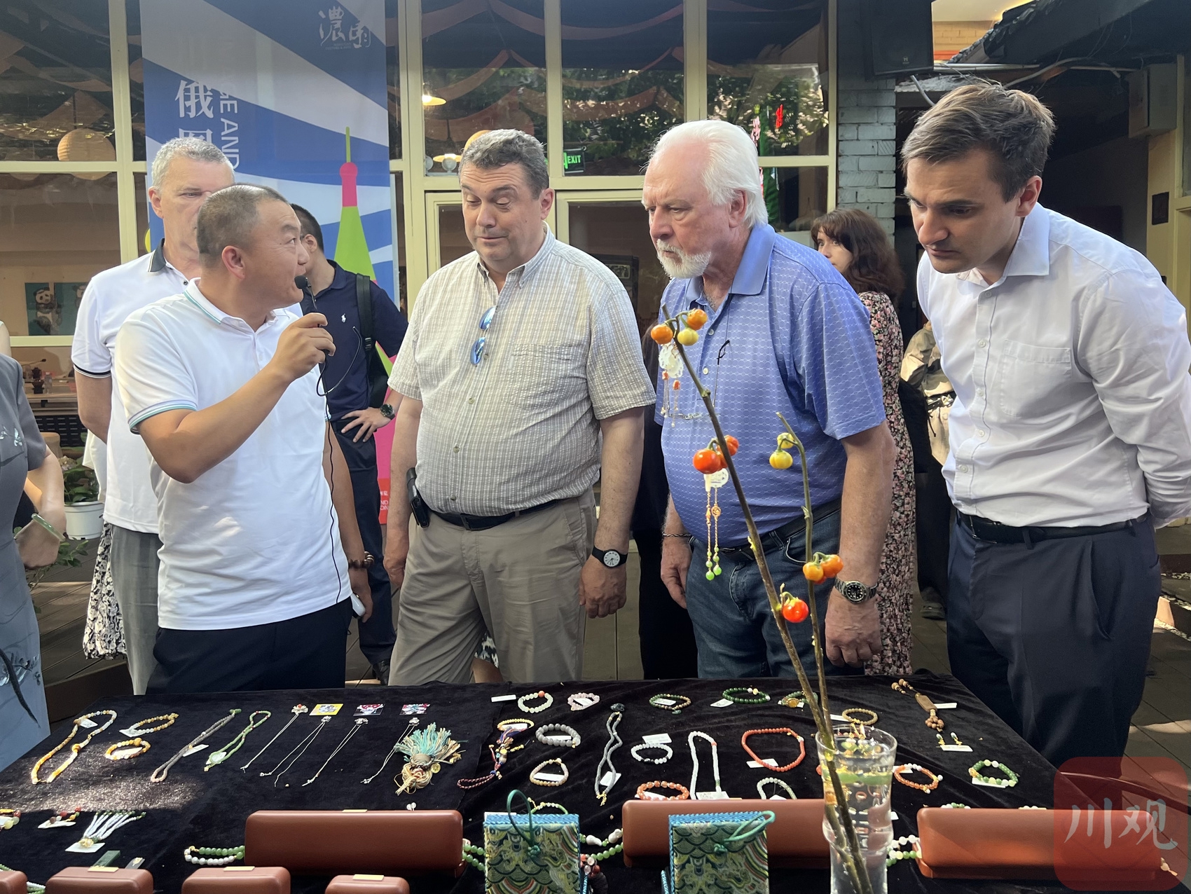 在浓园国际艺术村,代表团成员行走在古朴别致的小院中,欣赏非遗手工艺品,再喝上一杯盖碗茶,感受四川人的闲暇与乐趣。“四川很安逸,四川人也很热情。”这是在川期间,古谢夫的深切感受,“他们主动向我们打招呼、竖大拇指,让我看到了他们的善良可爱。”