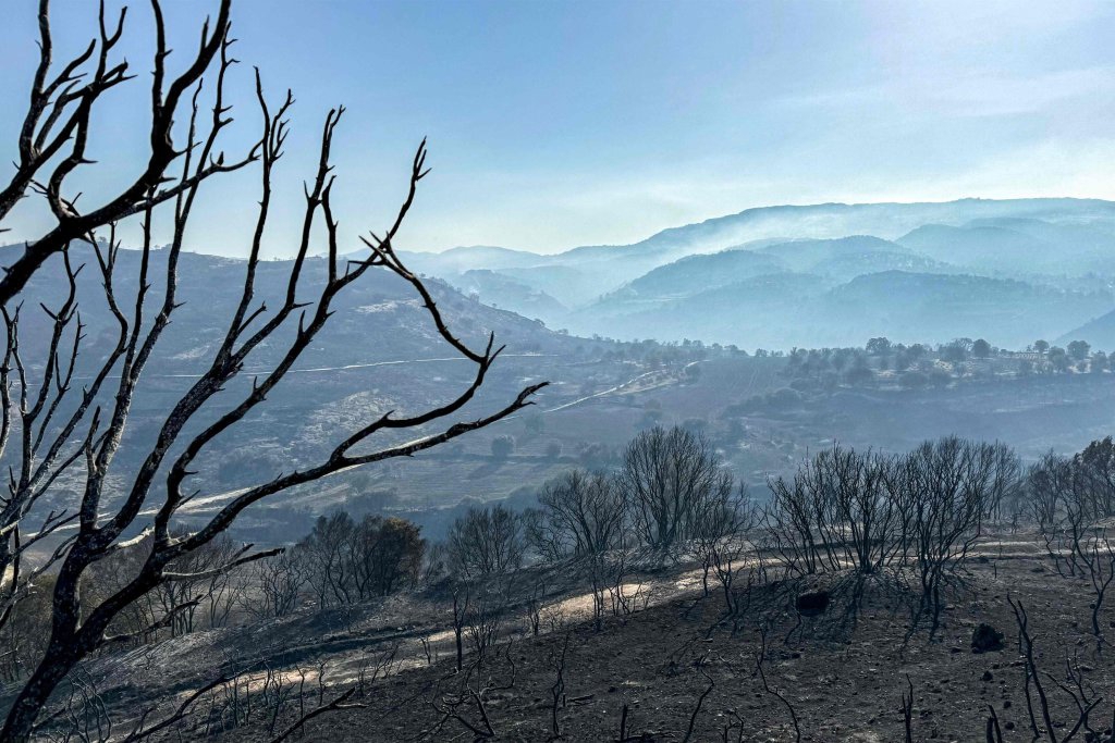 这是6月12日在塞浦路斯西部普萨其拍摄的大火后的树林。