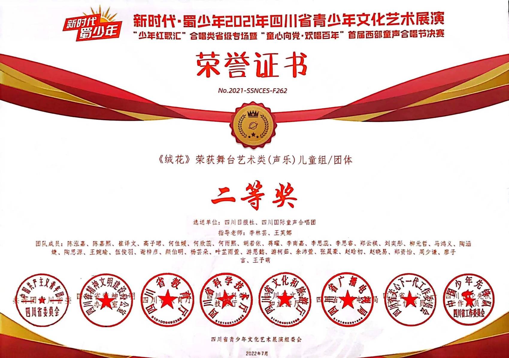 四川国际童声合唱团在第二届西部国际童声合唱节获二等奖。