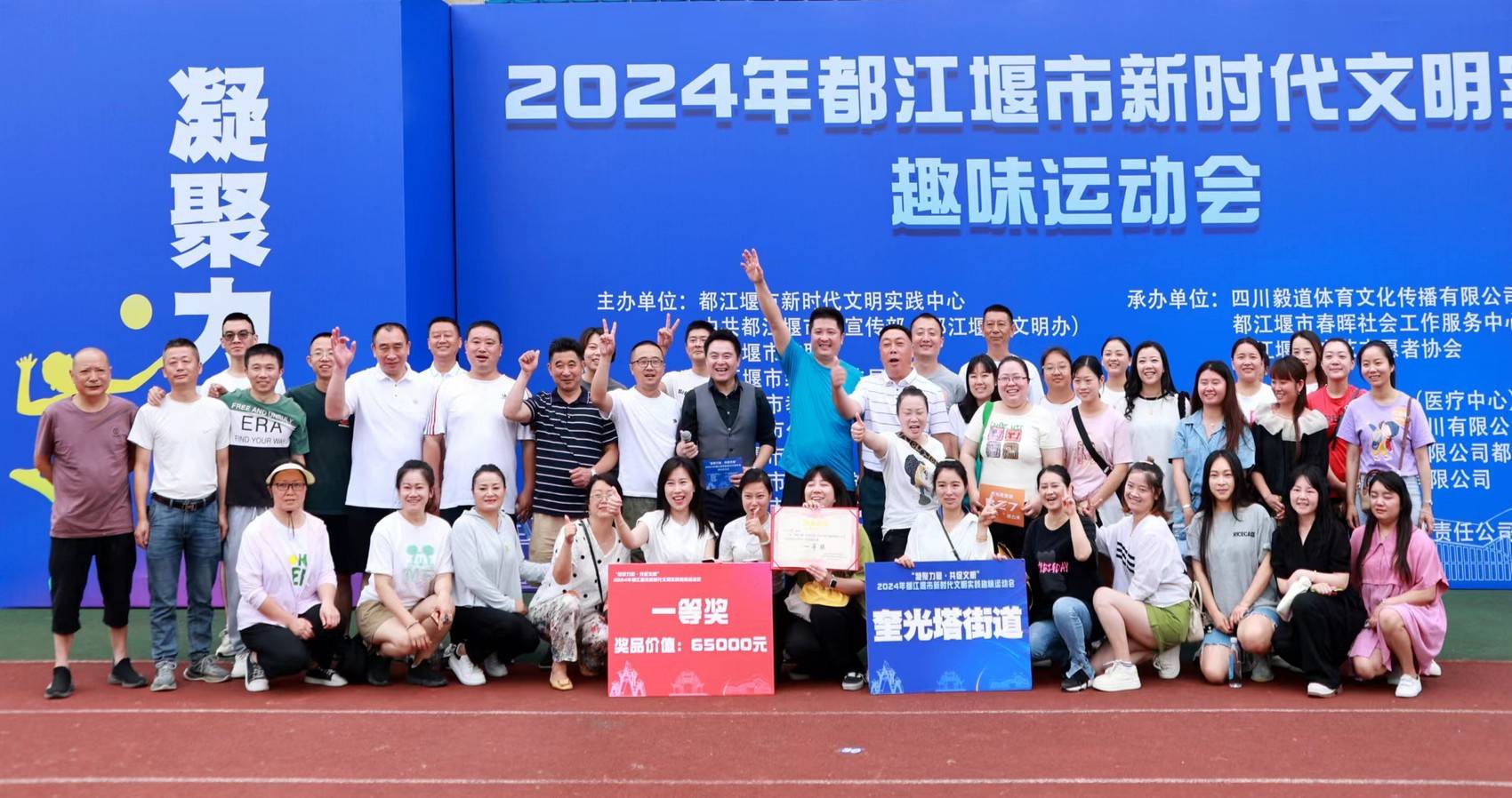 6月18日上午,2024年都江堰市新时代文明实践趣味运动会在都江堰市体育中心开赛。此次运动会以“凝聚力量·共促文明”为主题,由都江堰市新时代文明实践中心、市委宣传部(市文明办)、市文联、市综合执法局、市教育局、市公安局、市卫健局、市文广体旅局、市融媒体中心、龙池镇联合主办。