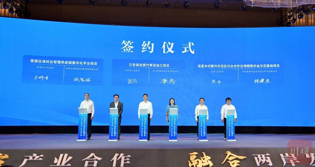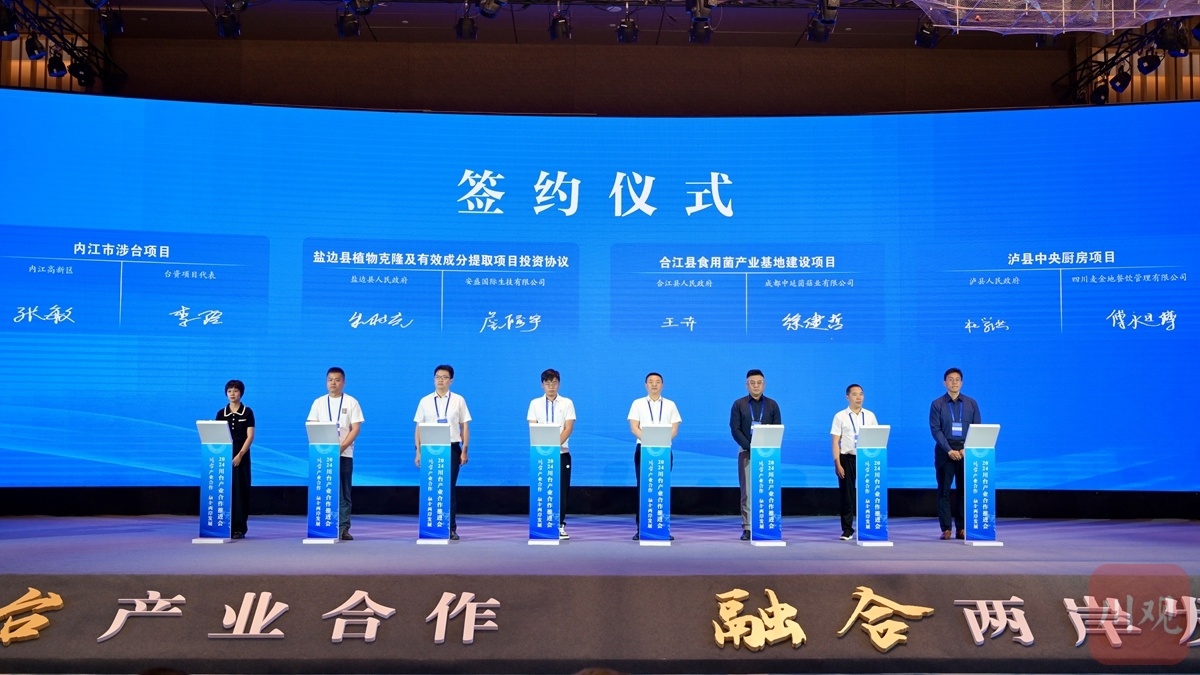 推进会现场,宜宾、攀枝花、泸州、内江4市的川台产业合作项目进行现场集中签约