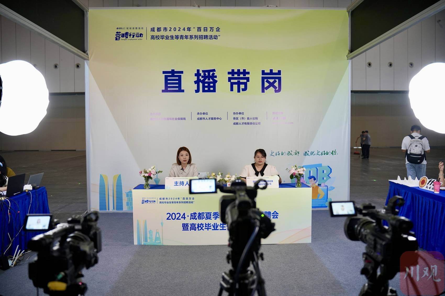 招聘会现场设有“云服务区”和“公共服务区”,提供求职简历打印、法律事务援助、政策咨询、职业倾向测评、就业指导、组织关系接转、档案业务办理等多样化配套人才和就业服务项目,为求职者提供全方位求职保障。此外,此次招聘会还在现场设置了“城市直播间”,邀请重点企业人力资源部门负责人来到直播间开展“职通成都”直播带岗活动,求职人才可通过直播平台在线与参加直播的企业人事主管和人力资源专家互动交流。