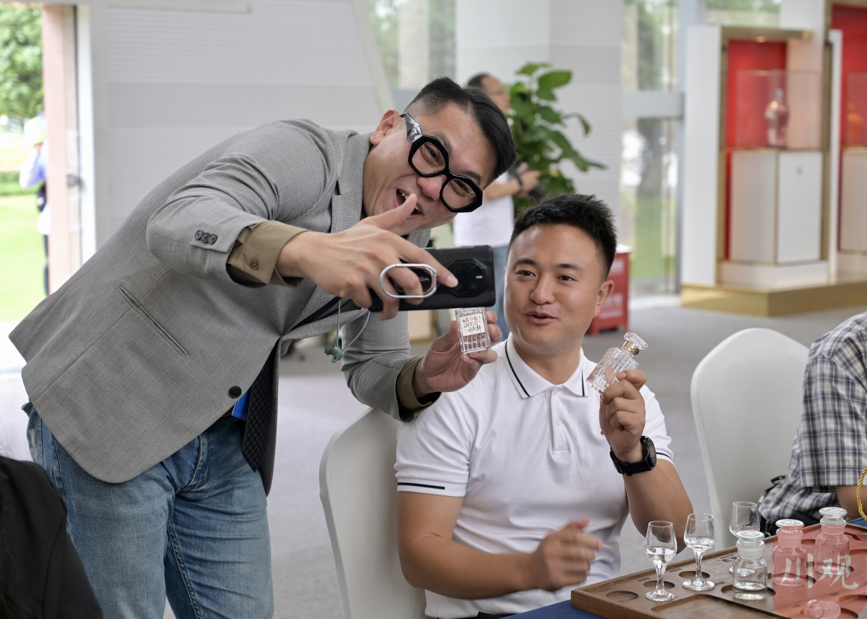 台湾自媒体人在五粮液集团直播展示自己刚调制的白酒