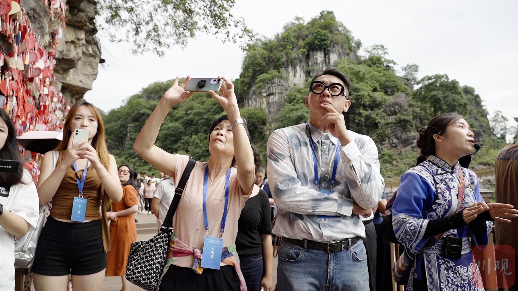 6月23日,“台眼望川·新友说蜀”2024台湾自媒体人天府游记活动走进四川宜宾兴文石海景区。翻涌如海的石头,世界级的大漏斗、地下溶洞群,让台湾自媒体人赞叹不已、流连忘返,直呼“叹为观止,大开眼界!”