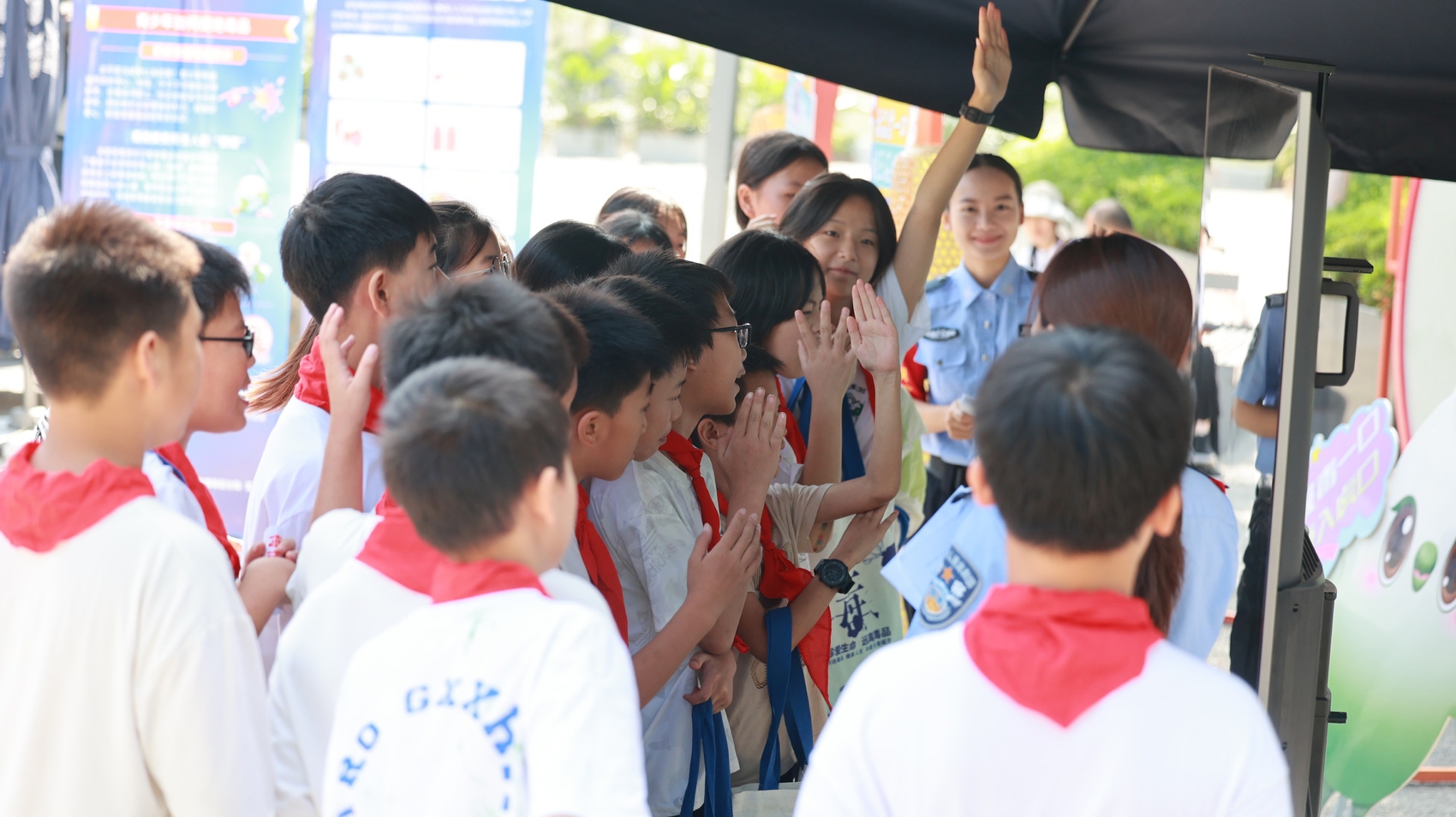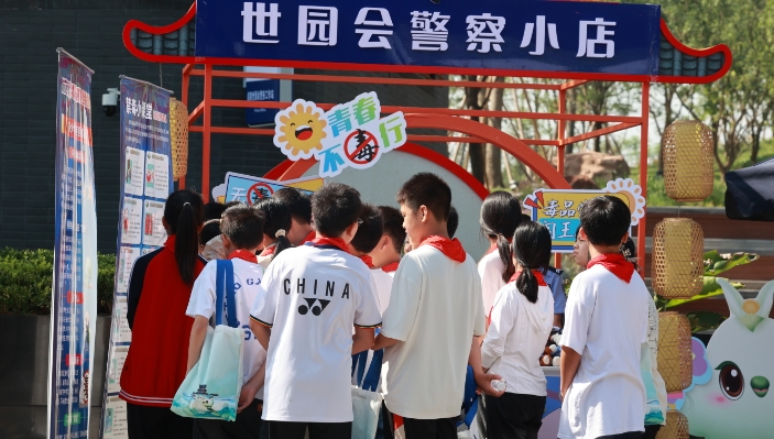 在6·26国际禁毒日来临之际,6月25日,成都世园会主会场园区警务队在警务室门口开起警察小店,主营禁毒、反诈、安全防范知识宣传。“开业”当天,小店迎来了首批“顾客”——25名来自成都东部新区兴隆学校的六年级学生。