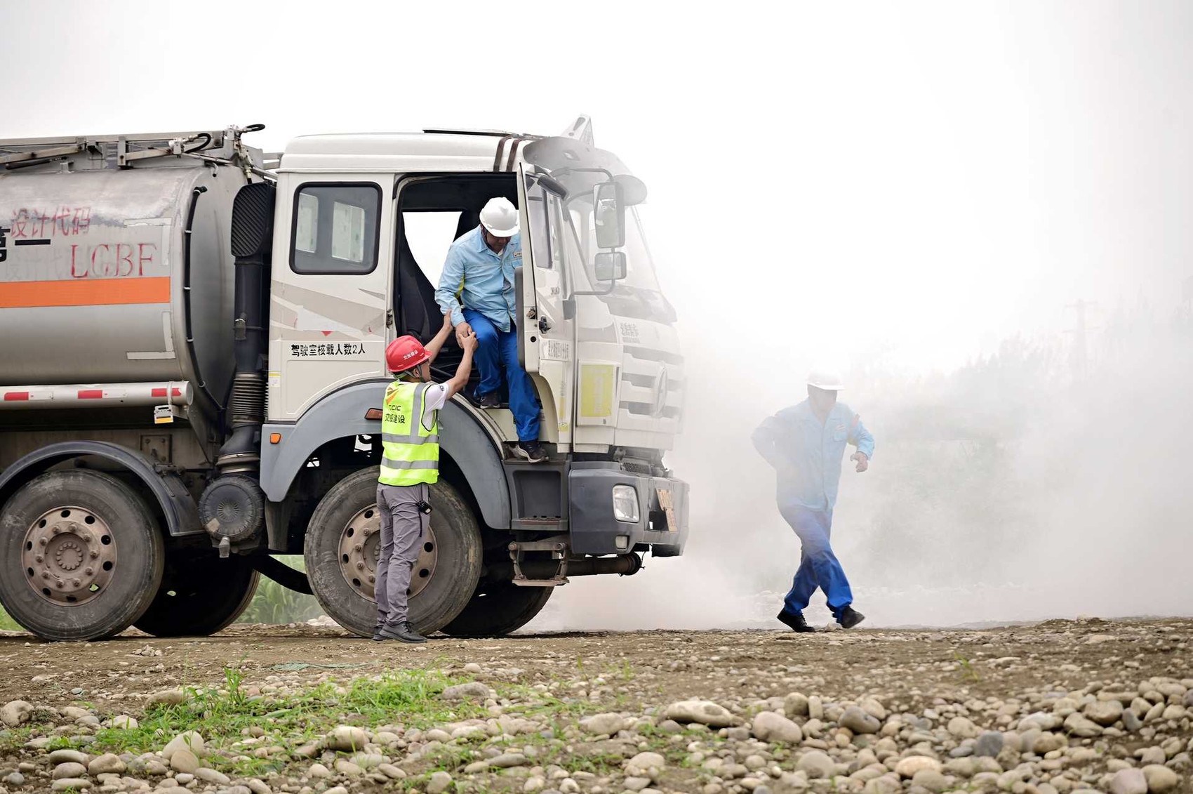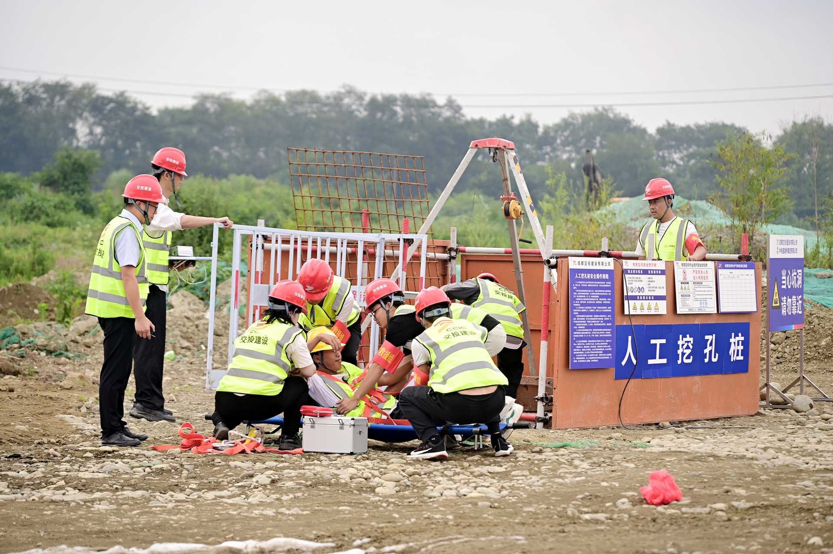 “各位工友,山洪要来了,请立刻到项目部广场紧急集合,乘坐大巴车撤离!”在成都市五环路温江段凤凰互通立交工程项目现场,演练正式开始。此次演练以训促练、以练促战,全面分析研判汛期交通运输行业安全风险,提前预设道路通行、施工现场可能遇到的危险场景,共设置汛期突发山洪灾害、危化品运输车辆事故、交通建设有限空间作业事故3个应急处置演练科目,在项目疏散安置组、安全警戒组、医疗救援组、应急处置组、无人机支援组等10个工作组的密切配合和高效联动下,高效完成了各项演练任务。