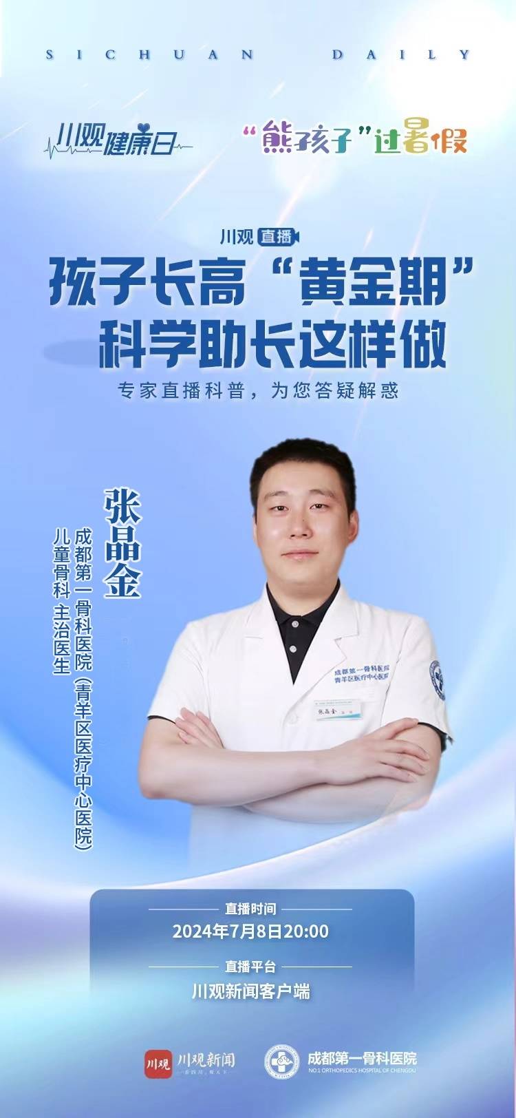 7月8日,川观新闻携手成都第一骨科医院/青羊区医疗中心医院开展健康科普直播,邀请儿童骨科专家,为我们揭开“长高的奥秘”,就家长们关心的儿童身高管理,进行科普讲解,答疑解惑。