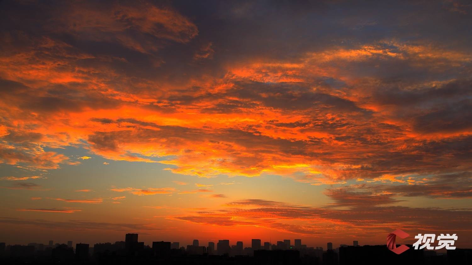 7月12日清晨,在武侯区红牌楼眺望火红朝霞。(C视觉摄影师 何正 摄)