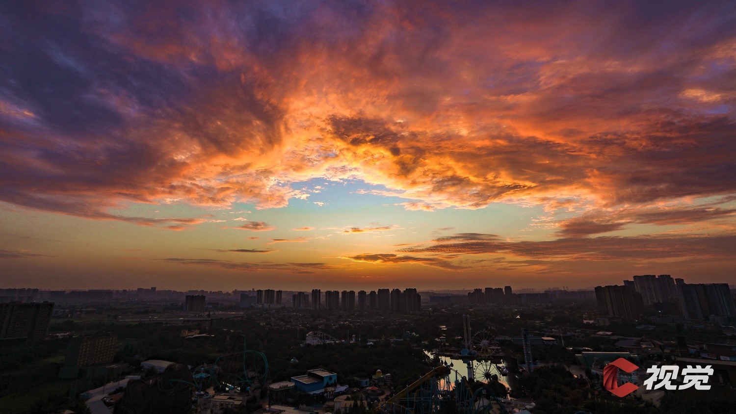 7月12日清晨,金牛区欢乐谷上空朝霞满天。(C视觉摄影师 雷良金 摄)