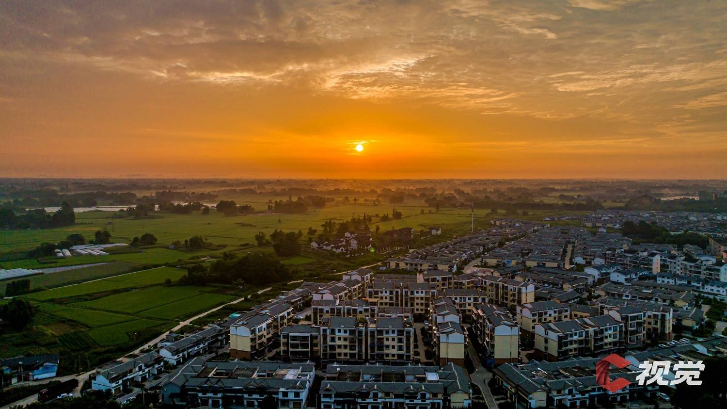 7月12日清晨,崇州市元通古镇的绚烂朝霞。(C视觉摄影师 杨武 摄)