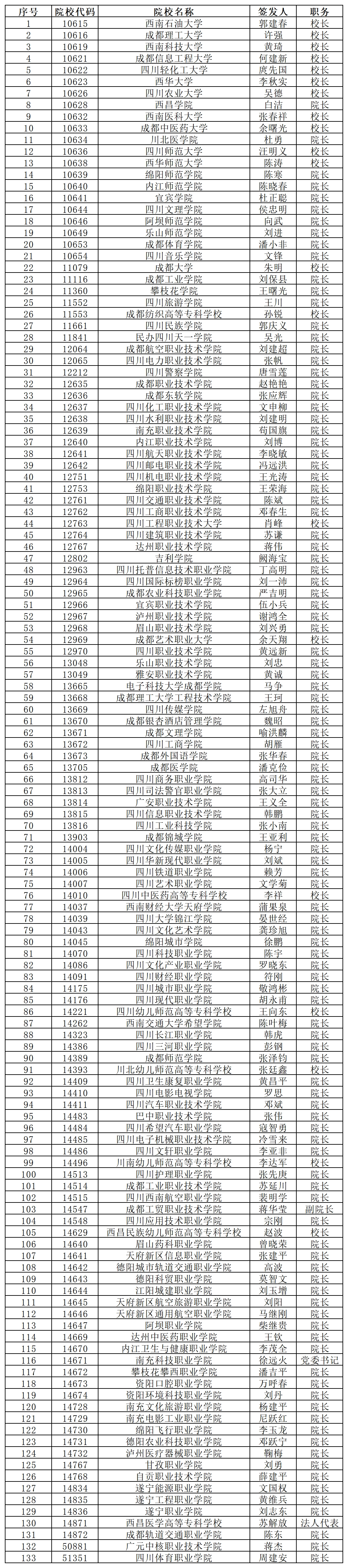 按照教育部相关要求,我省今年继续实行校长签发录取通知书制度,普通高校录取通知书除加盖高校校章外,还应由校(院)长或授权签发人签发,并对录取结果负责。7月12日,四川省教育厅公布了我省具有普通高等教育招生资格的地方属高等学校录取通知书签发人名单。
