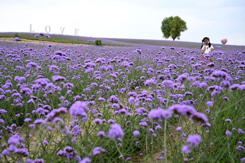 盛夏时节,地处毛乌素沙地边缘的宁夏薰衣草庄园内花卉竞相开放,迎来盛花期。