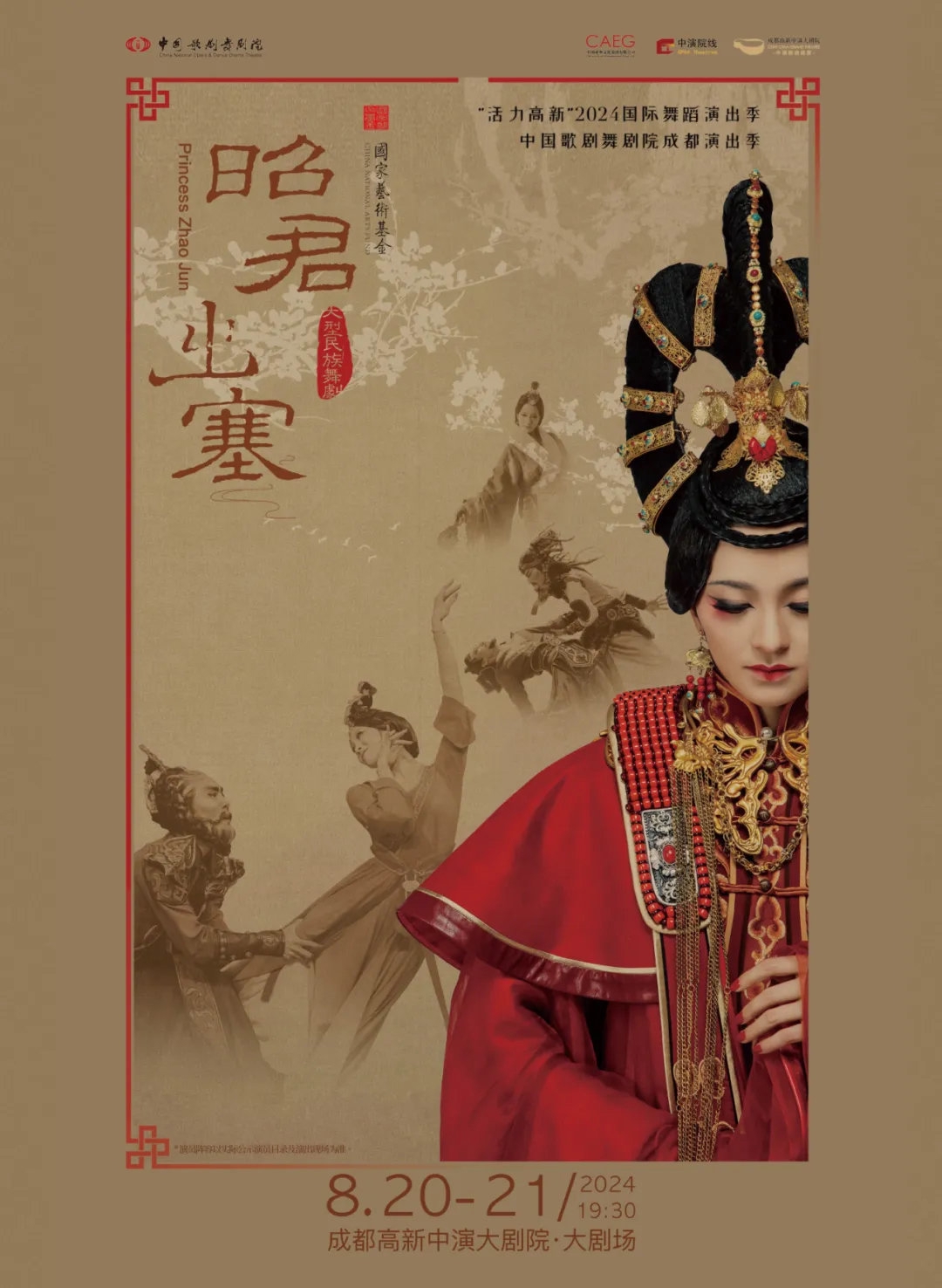 此次舞蹈演出季还涵盖了丰富的传统文化题材作品。在8月推出的成都高新中演大剧院x中国歌剧舞剧院演出季,将带来《昭君出塞》《赵氏孤儿》两部民族舞剧,舞蹈国家队碰撞经典历史题材,为这两个家喻户晓的传奇人物赋予了当代艺术的诗意解读,让观众在舞蹈美学中感受历史人物的家国情怀。北京舞蹈学院舞剧《梁山伯与祝英台》,通过中国古典舞语汇,呈现中国古典舞蹈的魅力和文学艺术的意蕴。“文华大奖”舞剧《五星出东方》,则用千年蜀锦讲述民族融合传奇,通过精良考究的服化道、史诗般的恢弘音乐,在舞台上展现东方美学与西域风情。