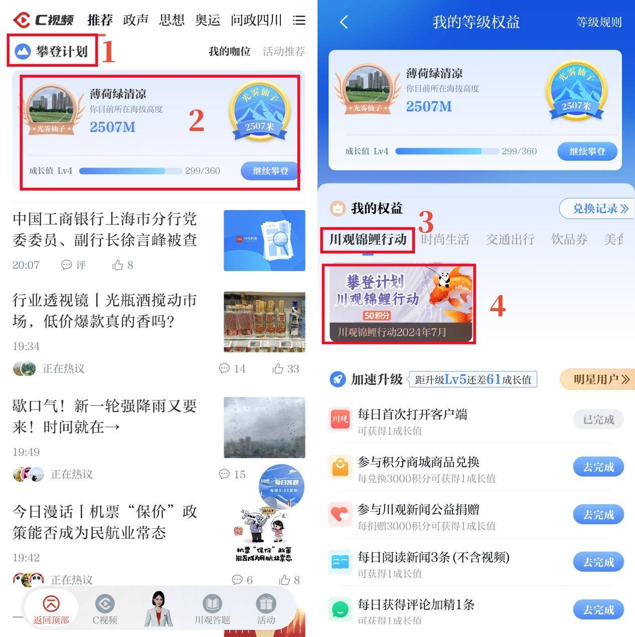 第一步:在川观新闻客户端首页找到“攀登计划”活动页面;