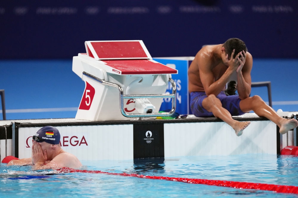 7月27日,巴黎奥运会游泳男子400米自由泳决赛在拉德芳斯体育馆举行。