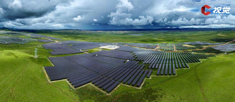 2024年7月25日,四川省甘孜州稻城县邓波乡的乐拉光伏电站,犹如一片蓝色海洋。C视觉摄影师 廖胜春 摄