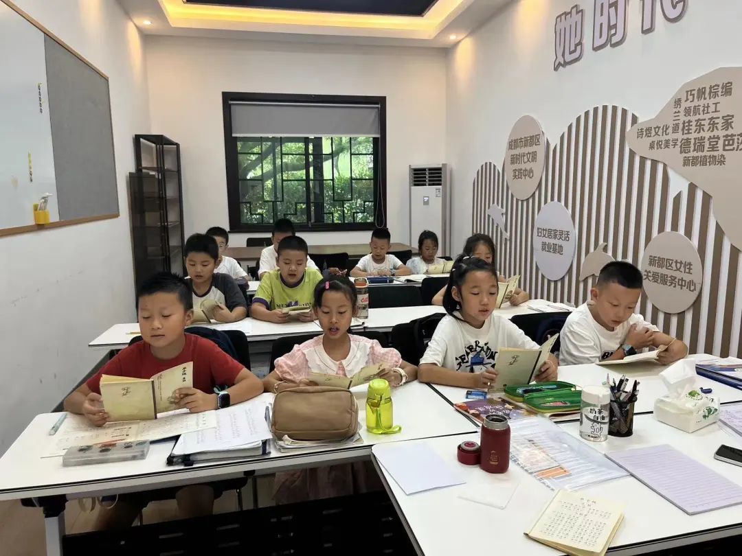 “我们是双职工家庭,一放假孩子就处于无人照看的状态,不放心孩子的居家安全,一听到‘官方’推出了托管班就立马报名了,在这里孩子既能得到看护又能学到知识。”7月22日以来,每天早上8点半左右,职工李婷都会将孩子送到在新都区新时代文明实践中心举办的“工”娃成长营。