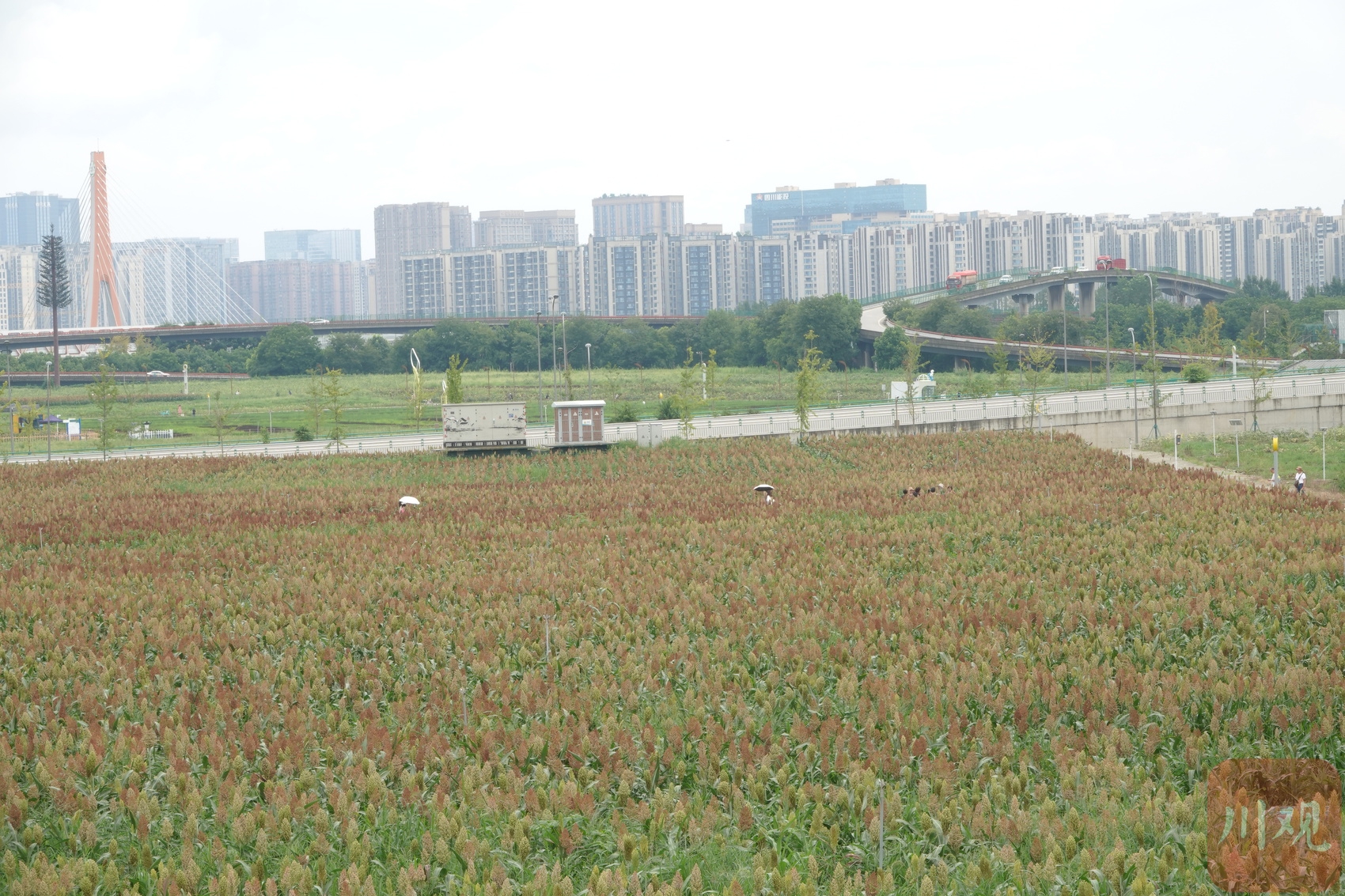 高粱地与远处林立的高楼相映成趣,共同构成了都市中一道独特而亮丽的风景线。