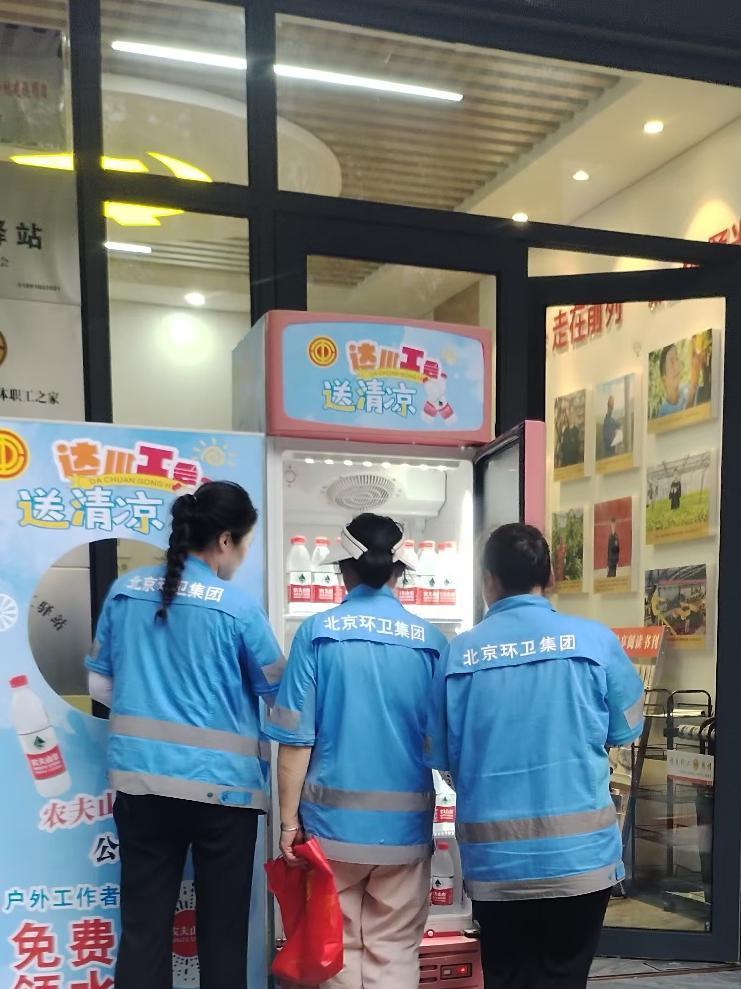 记者注意到,爱心冰柜里装满了清凉解渴的矿泉水、防暑降温茶等,免费提供给环卫工人、快递小哥、建筑工人等户外劳动者。在杨冬梅看来,爱心冰柜投放不仅在物质上为户外劳动者提供了帮助,更在精神上给予了他们尊重和关爱。