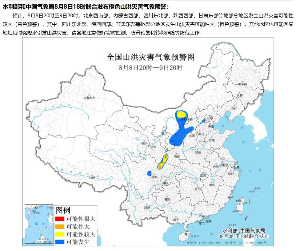 8月8日18时,中国气象局、中央气象台又与水利部、自然资源部联合发布多个气象预警信息,分别涉及高温、暴雨、强对流、山洪灾害、地质灾害。与昨天相比,今天增加了强对流预警。