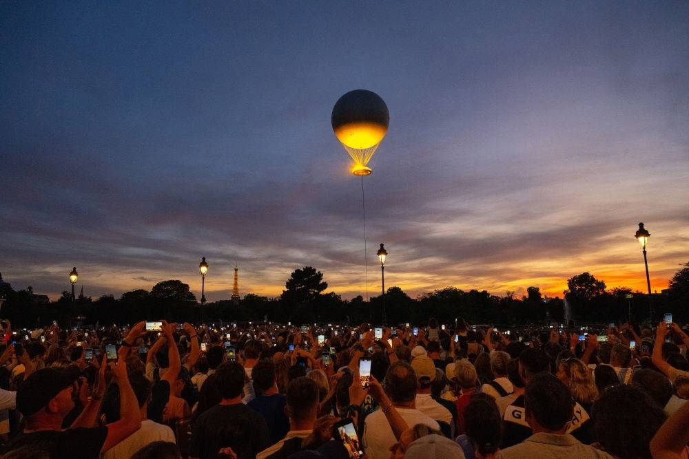 历史建筑与现代艺术的融合彰显法式浪漫。埃菲尔铁塔上的灯光秀划破夜空。特罗卡德罗广场上,神秘人将火炬交给法国传奇球星齐达内,不久后,杜乐丽花园内的主火炬——一个直径7米的火焰环,顶部是一个高30米、直径22米的系留气球,被“点燃”。