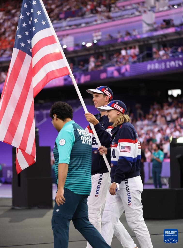 8月11日,美国体育代表团旗手在闭幕式上入场。