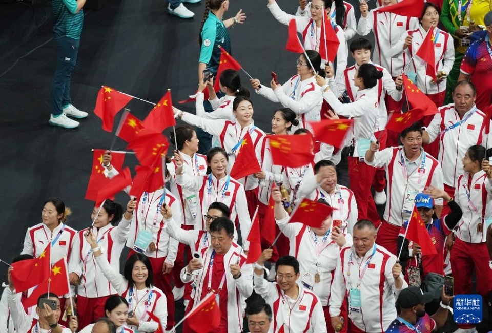 8月11日,中国体育代表团成员在闭幕式上入场。