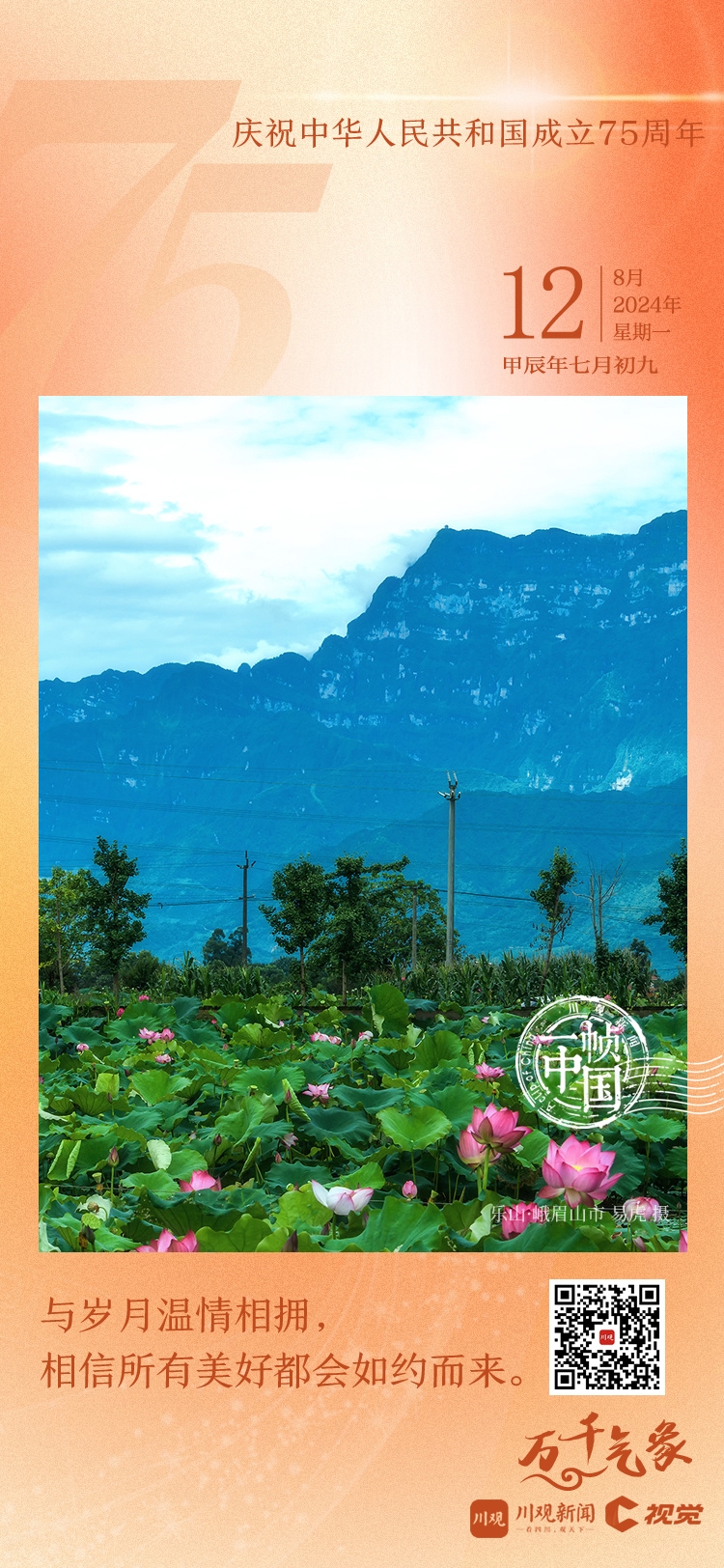 今天距离2024年国庆节还有50天。川观新闻《一帧中国》和你一起来到峨眉山市桂花桥农业大公园,欣赏青山荷塘相映成趣的乡村产业图景。