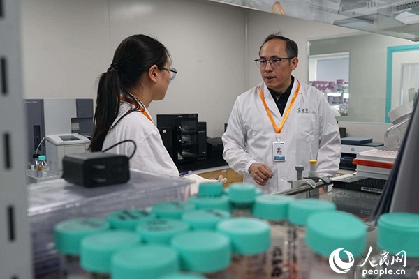 徐刚博士在实验室与工作人员交流。人民网记者 郝帅摄