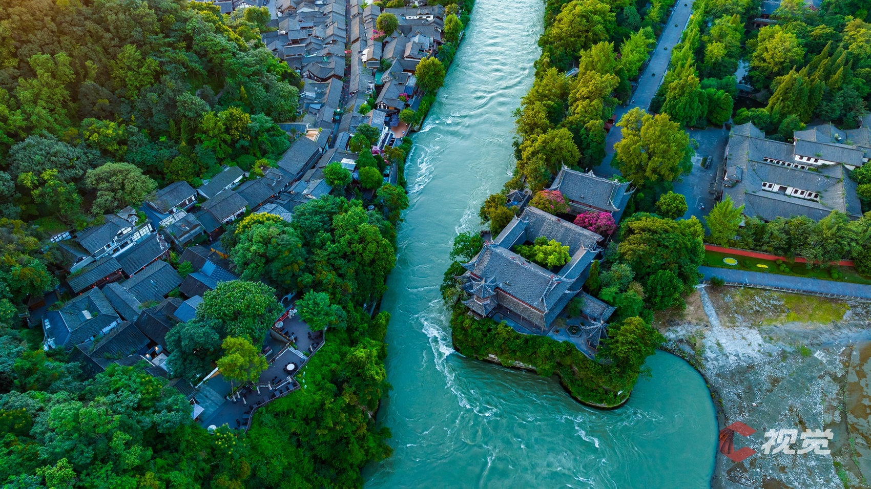8月17日,俯瞰都江堰离堆公园伏龙观内的紫薇花。