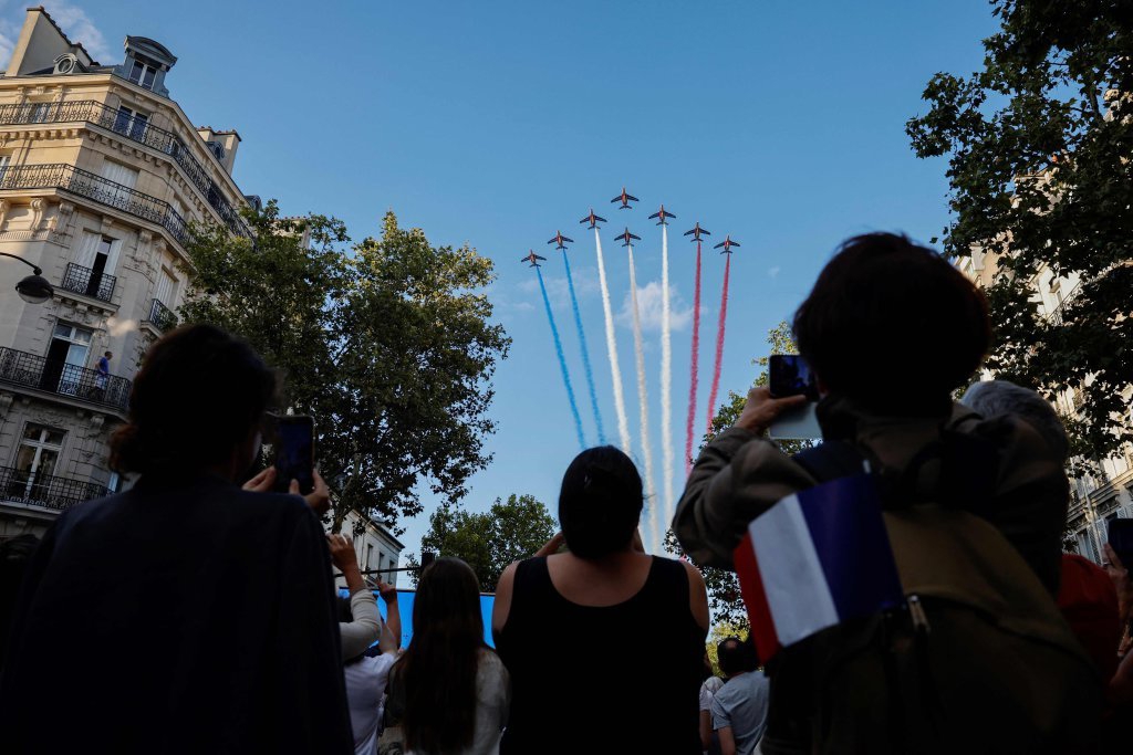 8月25日,法国空军飞行表演队在巴黎从纳粹德国占领下解放80周年纪念活动上进行表演。