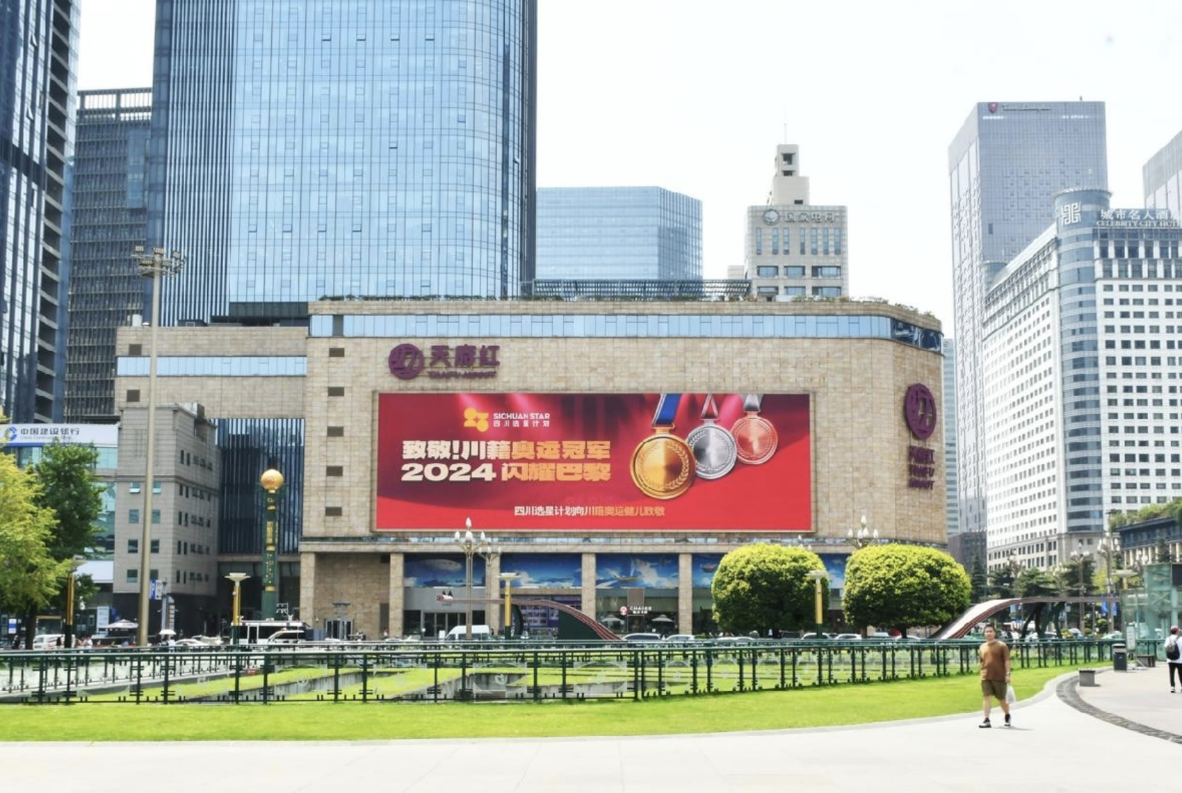 在已经结束的2024年巴黎奥运会上,四川体育健儿摘得“5金13银1铜”的历史最好成绩,夺金数量全国第五,奖牌总数全国第二。优异成绩的取得,离不开方方面面的大力支持,更离不开四川体育人的共同努力。他们有“坚守”——老将们再次站上奥运舞台;有“突破”——新秀们势如破竹创造历史;有“团结”——团体作战交出精彩答卷,他们共同在世界舞台上展现了四川体育人的风采与力量。当四川奥运健儿作为“顶流”荣耀回乡,成都在天府中轴线上献上高规格礼遇,热烈庆贺他们凯旋——大屏幕上滚动播放着“致敬!川籍奥运冠军2024闪耀巴黎”的宣传视频,引无数人驻足围观,拍照合影,成为了新的网红打卡点,人流如织、络绎不绝。