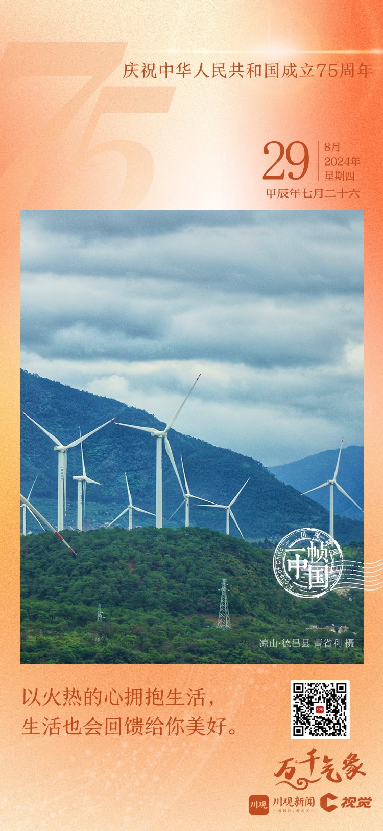 今天距离2024年国庆节还有33天,川观新闻《一帧中国》带你来到凉山州德昌县,眺望神奇的“大风车”。