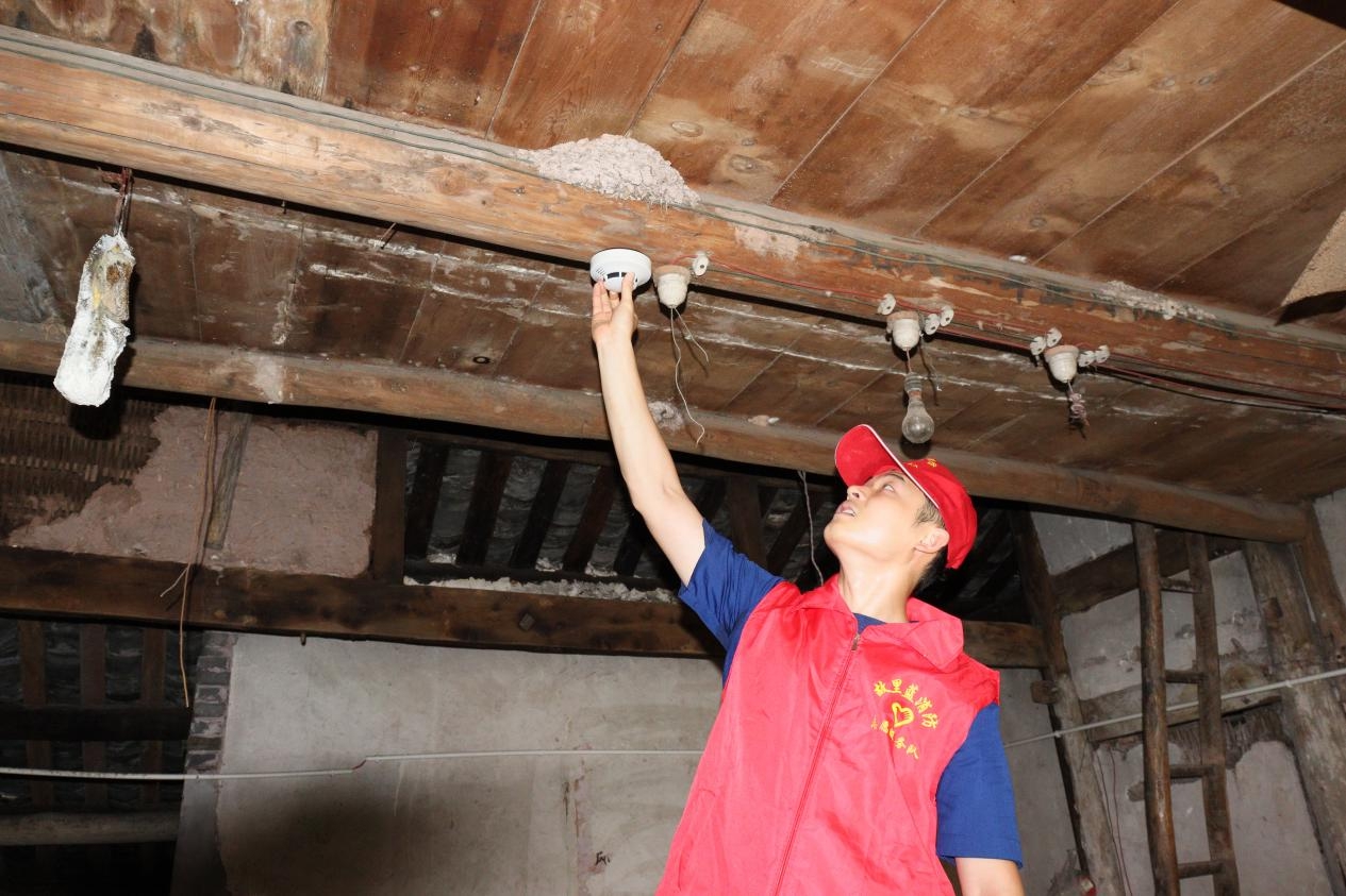 广安“老伴长安”志愿者为独居老人安装烟感报警器。