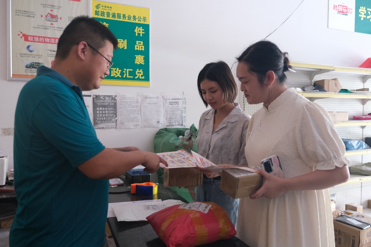 攀枝花“村村通”邮递志愿者在乡镇收发点向村民群众宣讲消防知识。