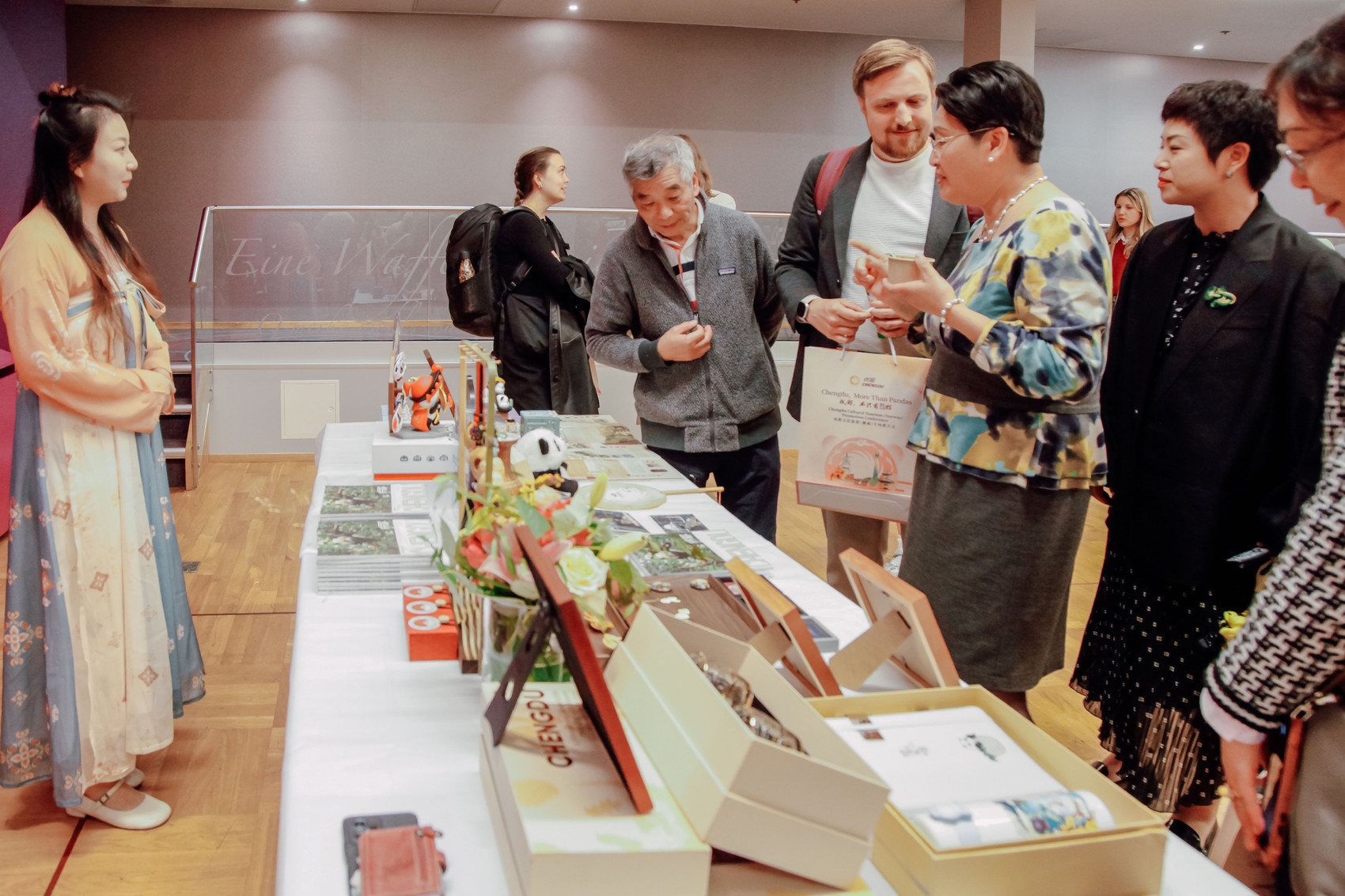 活动上揭牌的成都熊猫旅游驿站,以可爱的“熊猫”为大家介绍成都的旅游景点、美食街区,让挪威民众在关注大熊猫的同时,也能多方位了解成都。截至目前,成都文旅已在美国、法国、英国、德国、意大利等23个国家和地区设立了旅游驿站,活动现场还展示了成都人文特色,如非遗代表作如蜀绣蜀锦、瓷胎竹编等。