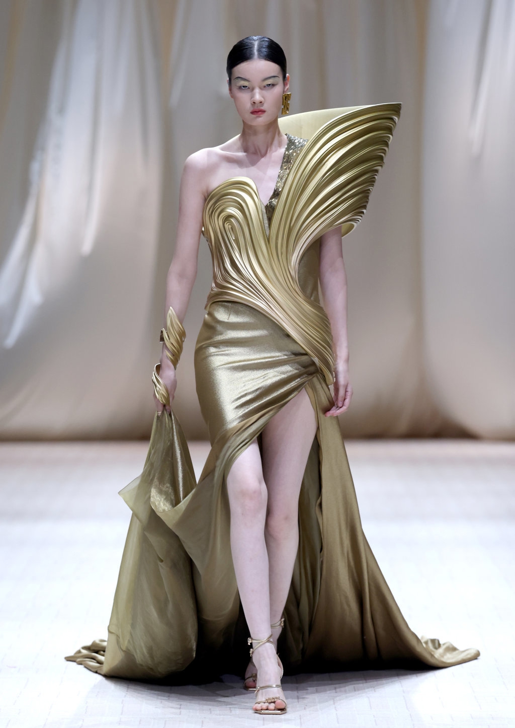 9月3日,模特在北京举行的2025春夏中国国际时装周开幕秀上展示高级定制品牌时装。