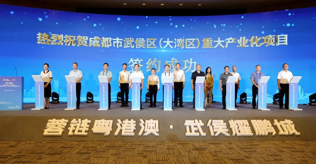 9月2日,“蓉链粤港澳·武侯耀鹏城”成都市武侯区(大湾区)招商引智推介会暨重大产业化项目集中签约在深圳举行,武侯区与世界500强企业、上市企业、独角兽企业、专精特新企业等粤港澳大湾区企业签约,涵盖香港凤鸣投资健康科技项目、博乐信息西南总部项目合作项目等14个项目,涉及低空经济、微波射频、数字健康、高端医疗器械等重点产业。