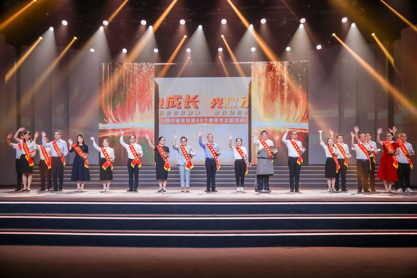 以“照进成长·光耀未来”为主题的四川省庆祝第40个教师节主题活动现场。