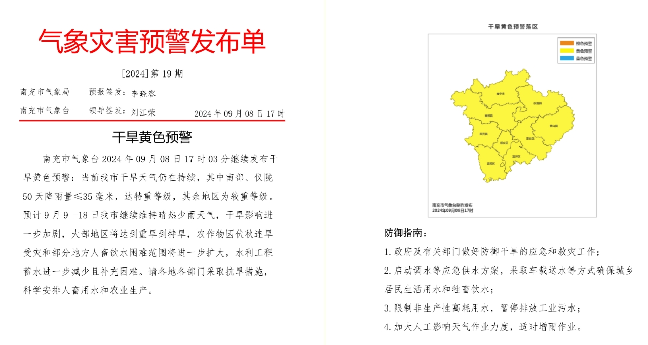 继南充市9月8日确认干旱黄色预警之后,9月9日,达州市将干旱蓝色预警升级为干旱黄色预警。这两个地区的干旱,大部将达到重旱至特旱级别,需要引起高度重视。
