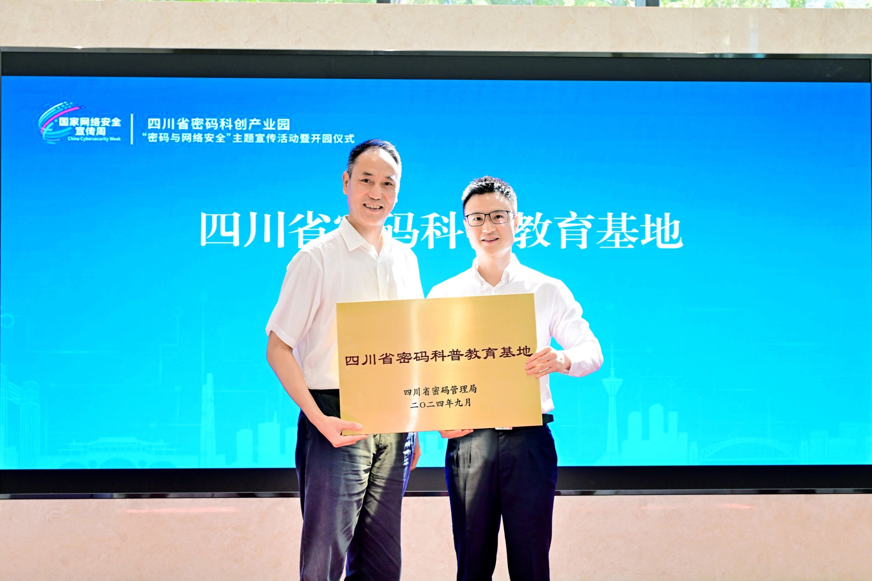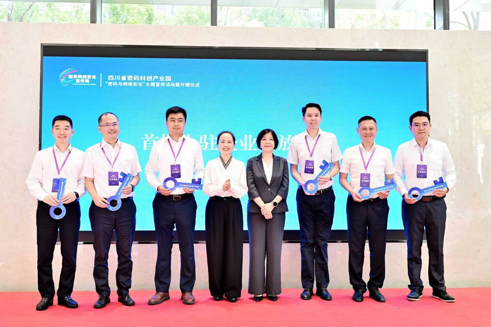 活动现场,省密码管理局、成都市密码管理局相关负责人向四川省密码科创产业园授予“四川省密码科普教育基地”“成都市信创密码适配服务中心”牌子。经济和信息化厅、成都高新区管委会相关负责人共同为四川省数字证书认证管理中心有限公司(四川CA)、四川省中试研发有限公司、成都安美勤信息技术股份有限公司等6家园区首批入驻企业发放入园钥匙。