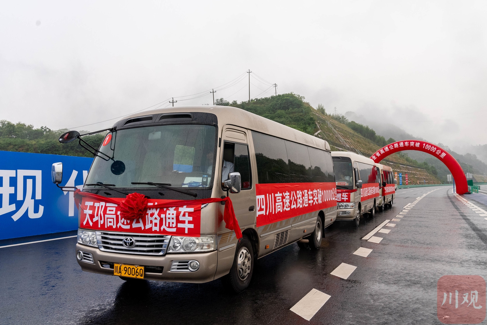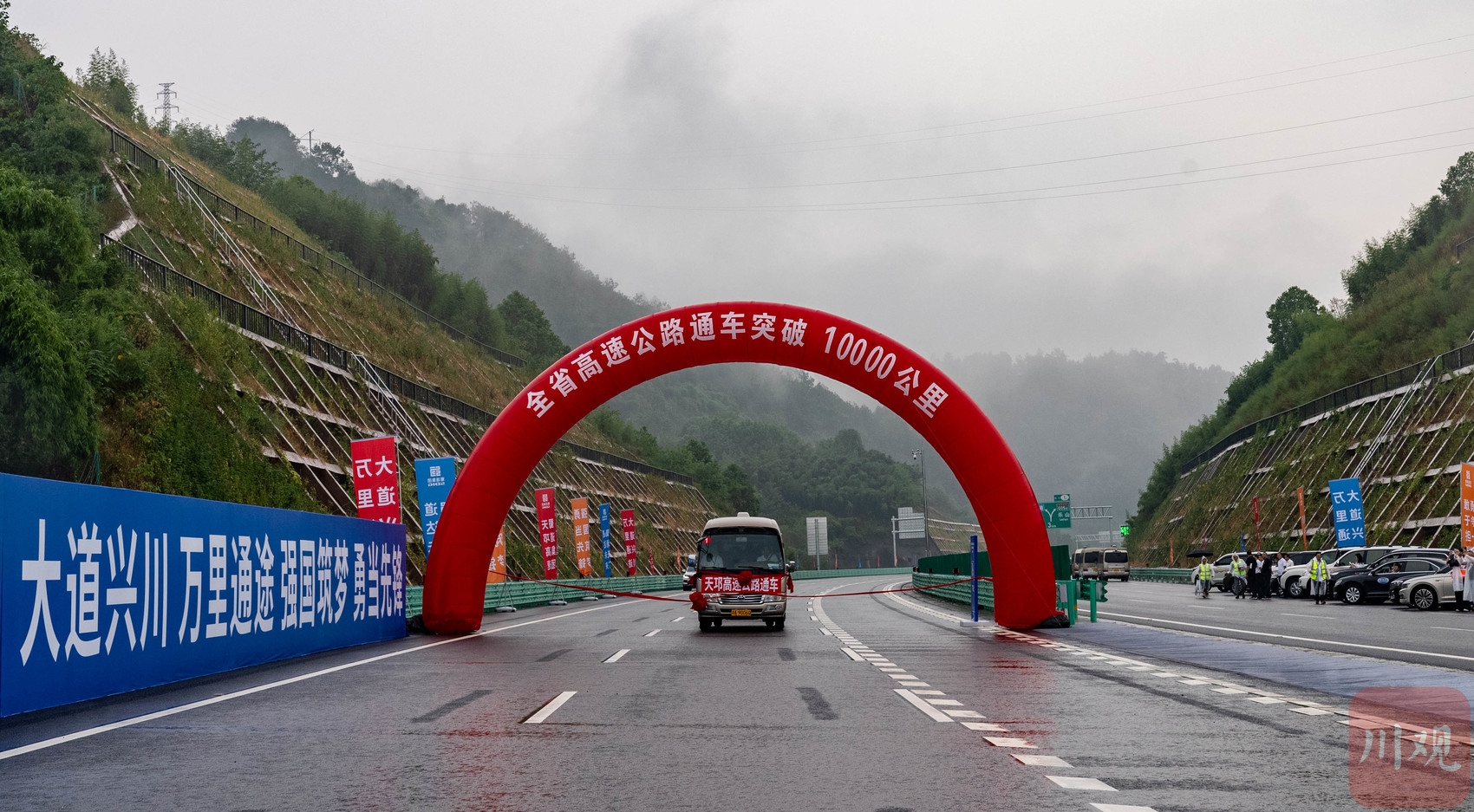 9月12日9时36分,天府新区至邛崃高速新津区永商镇烽火村路段,随着三辆缓缓行驶的中巴车撞开红绸线,掌声响起,一个里程碑时刻来临——四川高速公路通车里程破万,达到10051公里。四川成为国内第三个高速公路通车里程突破1万公里的省份,这不仅书写了四川破解“蜀道难”的新历史,也在我国交通强国建设征途中写下厚重一笔。