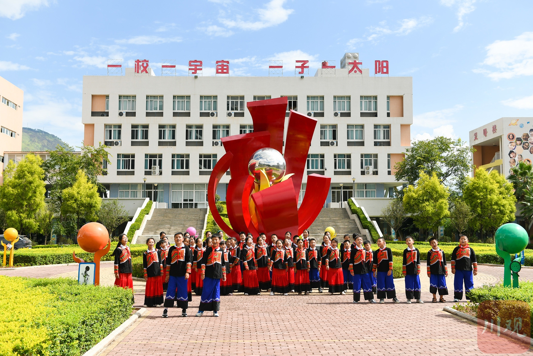 9月11日,宁南县朝阳小学舞蹈社团的学生们在演唱彝族《上学歌》。