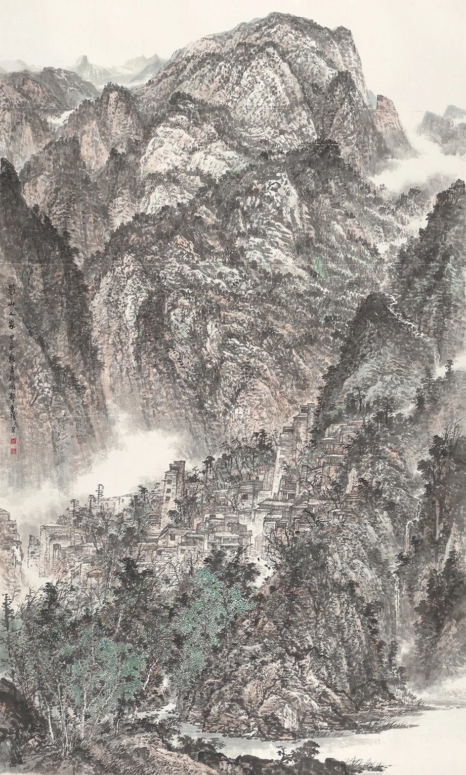 蜀山人家(中国画),尺寸:236cm×143cm,施秉伟 作