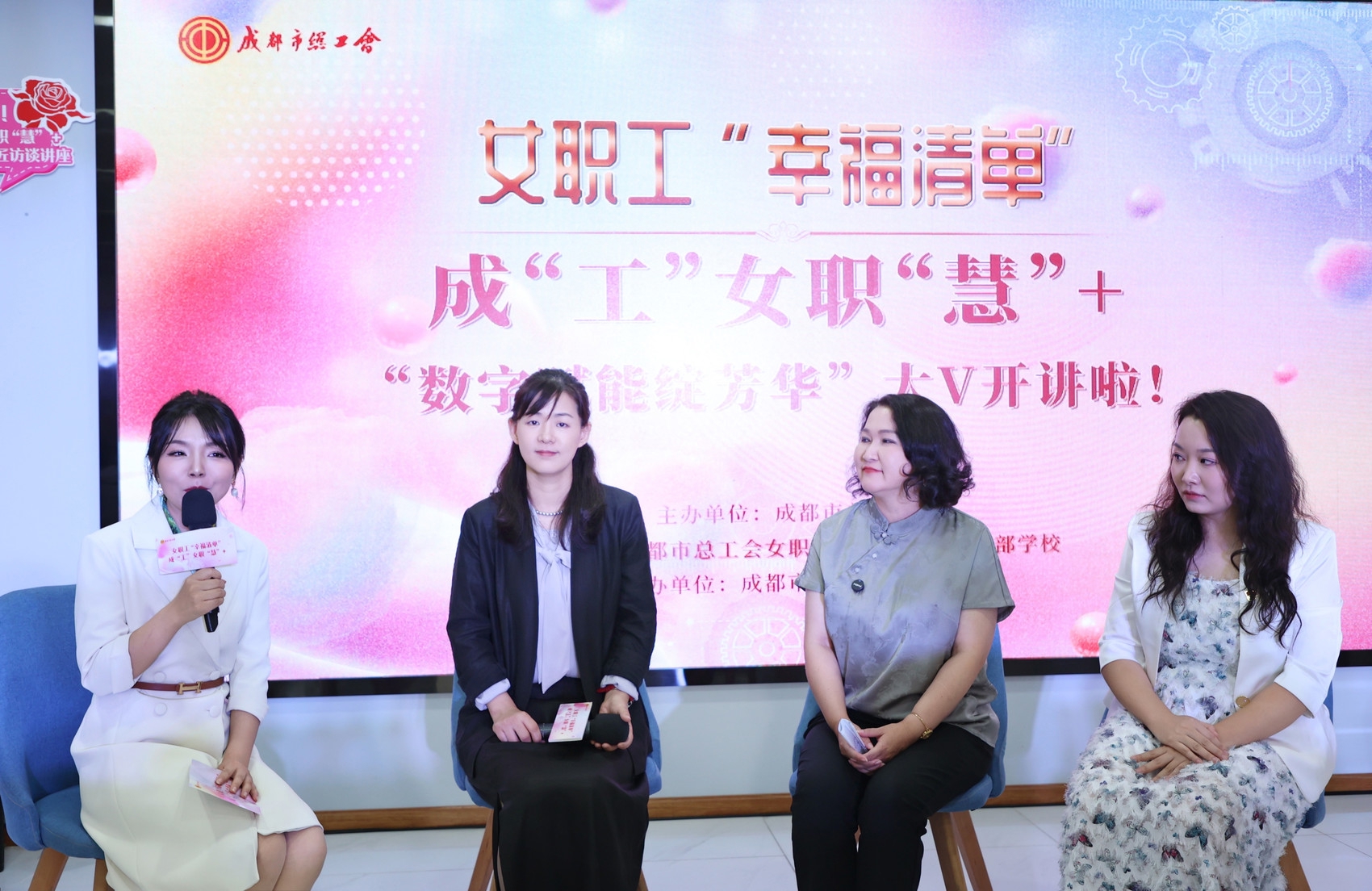 9月19日下午,由成都市总工会主办,成都市总工会女职工委员会、成都市工会干部学校承办,成华区总工会协办的“女职工‘幸福清单’ 成‘工’女职‘慧’+”系列品牌的首场活动——“数字赋能绽芳华”大V开讲啦!在成都市成华区万谷智慧产业园举行。