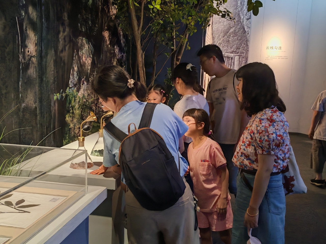 展览不仅可以看,还可以玩。在“我与古柏合个影 ”互动场景处,不少观众排队“云打卡”蜀道明珠翠云廊,与隆中对柏、张飞柏等著名柏树合影留念;“闻香秦巴山”互动展示区,大家兴致盎然辨别起大蜀道地区当归、香柏木等植物精油的香味……一系列趣味互动设计,让蜀道观展体验更加独特。在展览的第三部分,和蜀道有关的诗词悬挂在一起,既营造出风雅的艺术氛围,也让观众逛至此处,可以在诗词中继续品味悠悠蜀道上的风华万象。