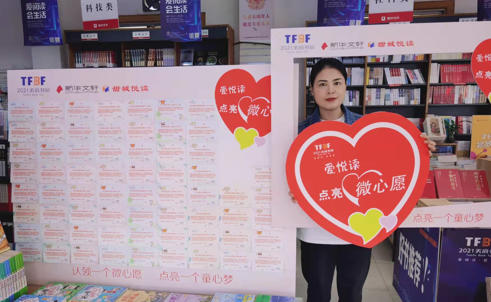“点亮阅读微心愿”是天府书展的一项重点乡村阅读公益活动,旨在倡导社会关注农村留守儿童阅读引导与陪伴,为新时代乡村文化振兴贡献力量。2021天府书展期间,“点亮阅读微心愿”活动首次在内江开展;2022年,活动由中宣部印刷发行局、中共四川省委宣传部指导,四川新华出版发行集团主办,新华文轩出版传媒股份有限公司、四川省图书馆承办,并在天府书展期间正式启动;2023年,与浙江联合开展“浙川友爱·点亮阅读微心愿”活动,走进浙川两地乡村,点亮两地孩子上万个阅读心愿。