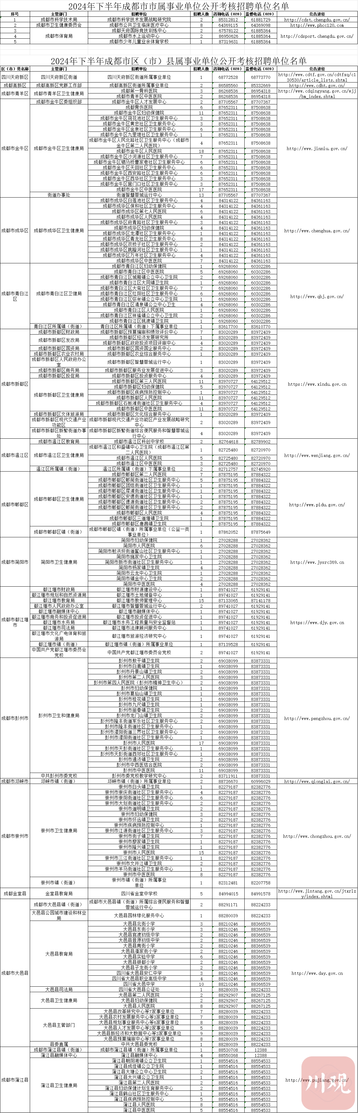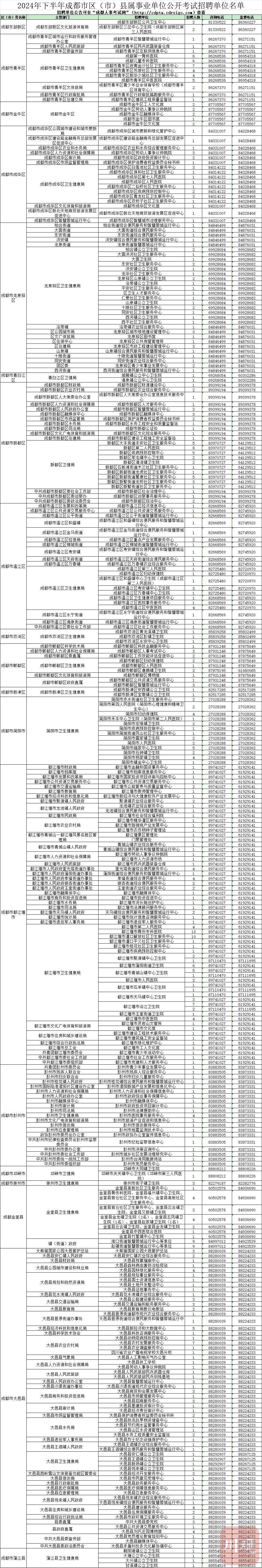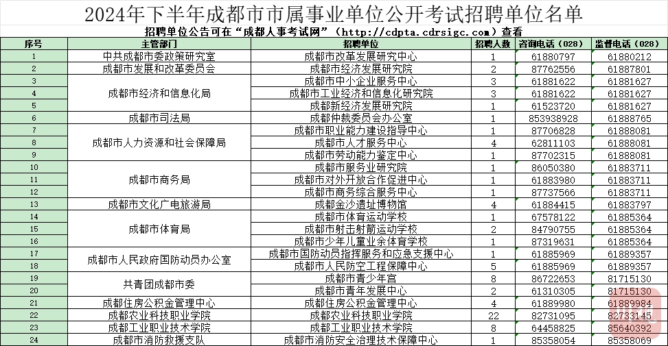 《2024年下半年成都市事业单位公开招聘单位名单》