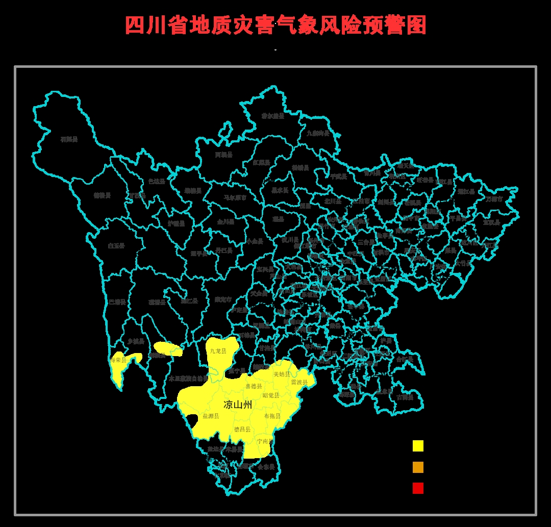 凉山州:西昌市、会理市、木里县、盐源县、德昌县、会东县、宁南县、普格县、布拖县、金阳县、昭觉县、喜德县、冕宁县、越西县、甘洛县、美姑县、雷波县